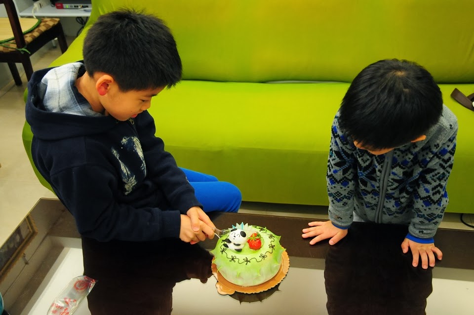 蛋糕跟生日禮物都是他自己挑的,今年的蛋糕還蠻好吃的。